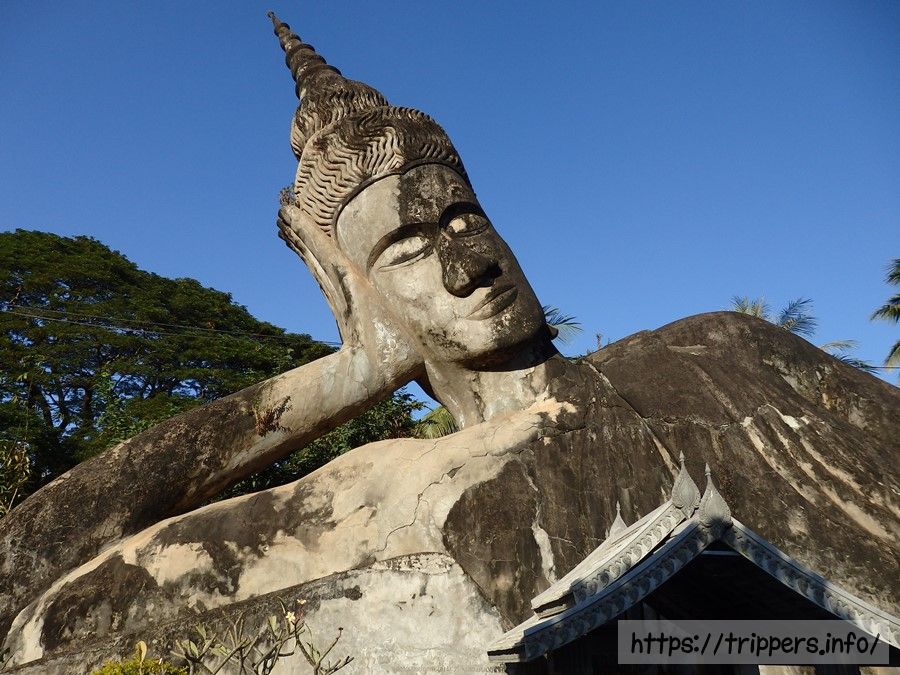 ブッダパークとは、ビエンチャンの中心部からバスで1時間ほど離れたメコン川沿いにある、仏教とヒンドゥー教をテーマにした観光地です。神聖な場所とは限らず、ユーモアやジョークを交えた面白おかしい神仏などの彫像が200体以上置かれています。しかし数ある彫像の中で、巨大な横たわった仏像は地元の人々に崇拝されています。ワット・シェンクワンとも呼ばれ、タイ出身のブンルア・スリーラット(Bunleua Sulilat)によって1958年に建てられました。彫像は鉄筋コンクリートで造られており、人間や神、動物、悪魔など様々な姿をしています。仏のような微笑ましい表情から、舌を出したコミカルな表情まであり、彫像1体1体を見て楽しめる「珍スポット(またはB級スポット)」になっています。