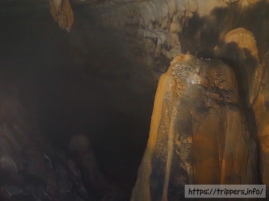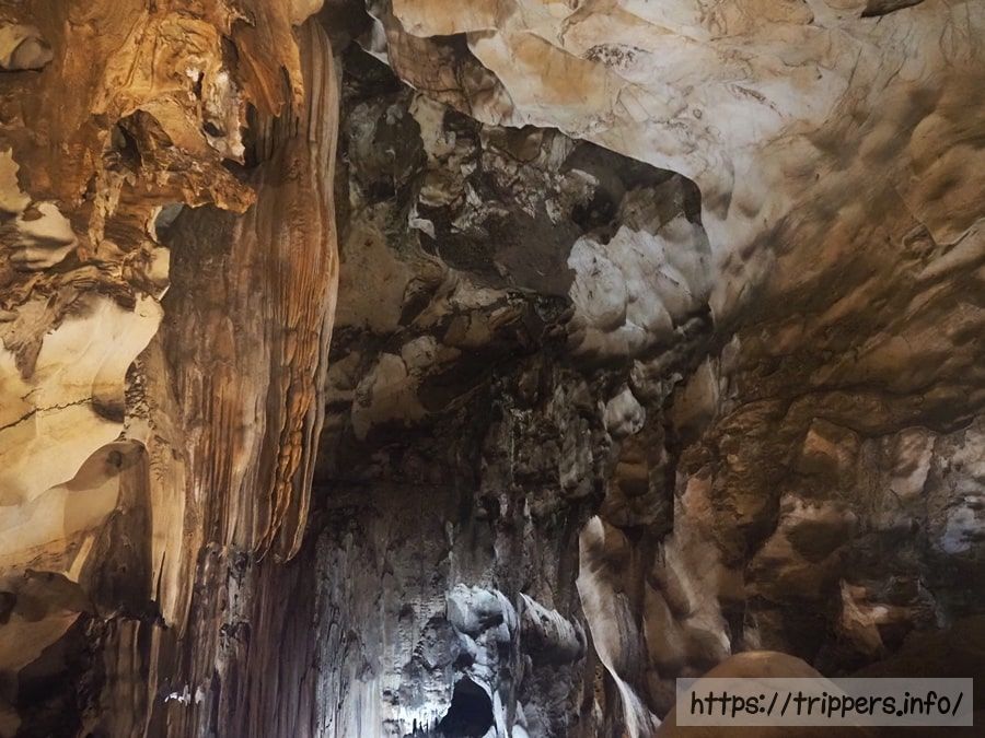石灰岩の洞窟の内部は巨大な空間が広がり、天然の鍾乳石が育っています。