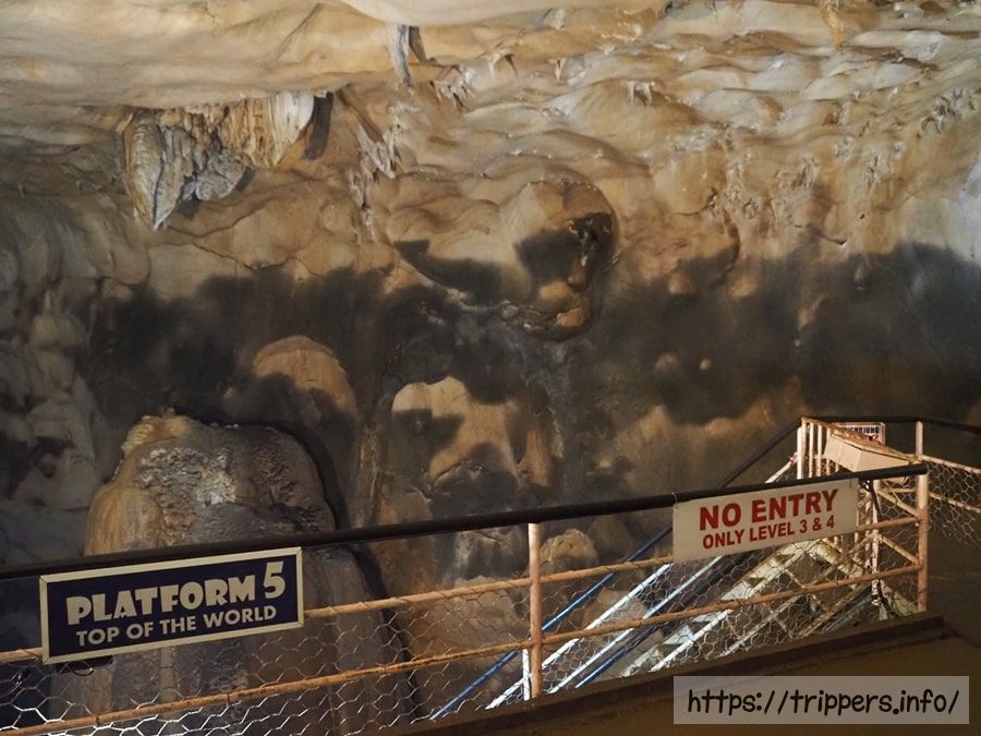 コース2の終点は世界の頂上(Top Of The World)と呼ばれる見所までです。そこから先はライトアップされていない地下川がある地下洞窟へ続いており、コース3~4を選択した人が進めます。