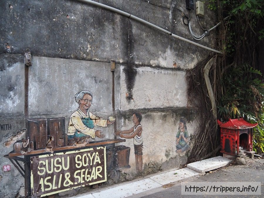 SUSU SOYAやOld Penang Soy Milk Sellerと呼ばれる作品で、場所はGat Lebuh Chuliaにあります。
