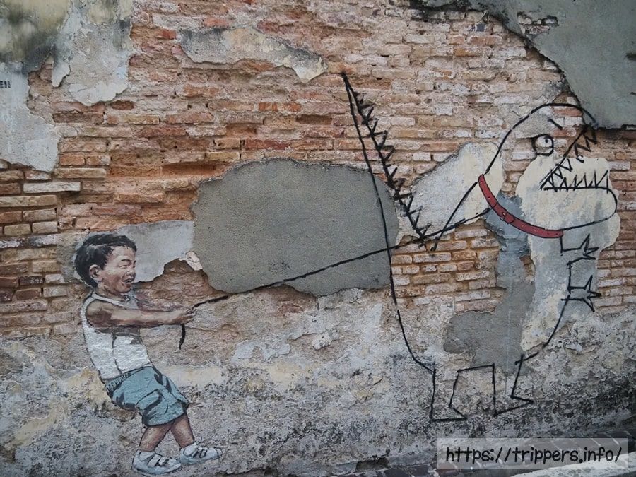 Little Boy with Pet DinosaurはErnest Zacharevic氏の作品で、場所はLebuh Ah Queeにあります。