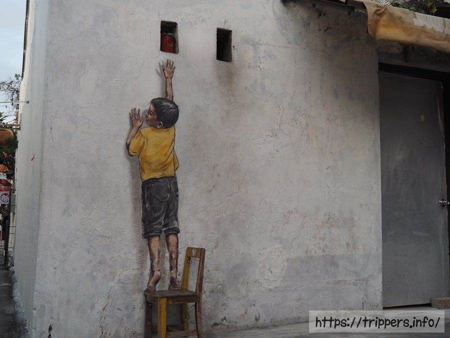 毎年開催されているジョージタウンフェスティバルですが、2012年の時にErnest Zacharevic氏が招待され、その時に描かれた数々のウォールアートが一番有名で人気があります。