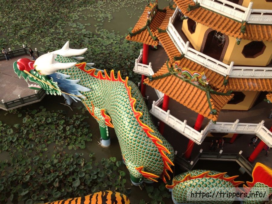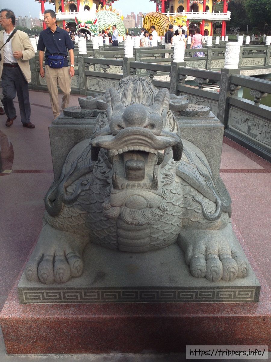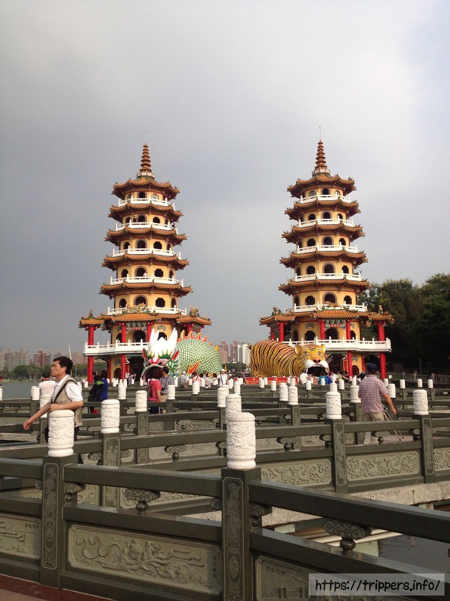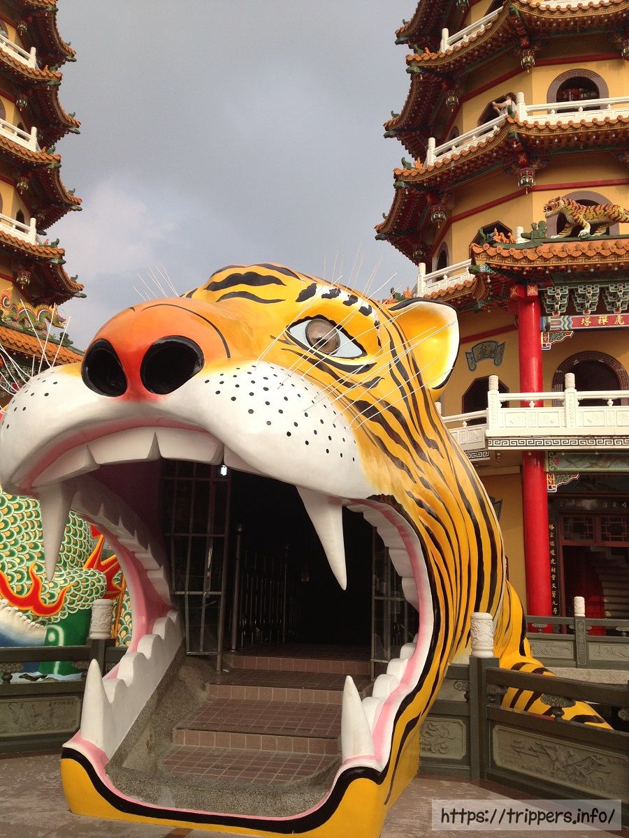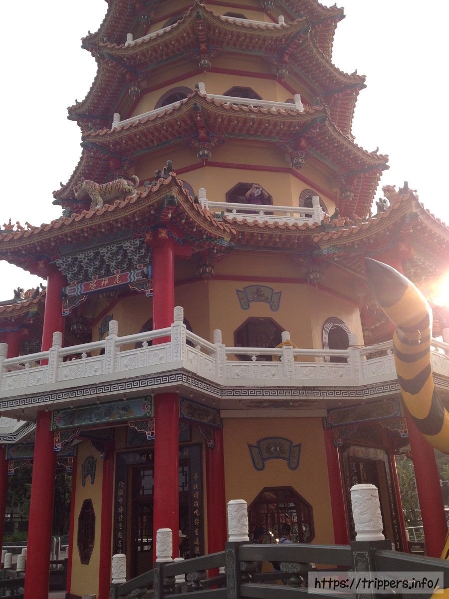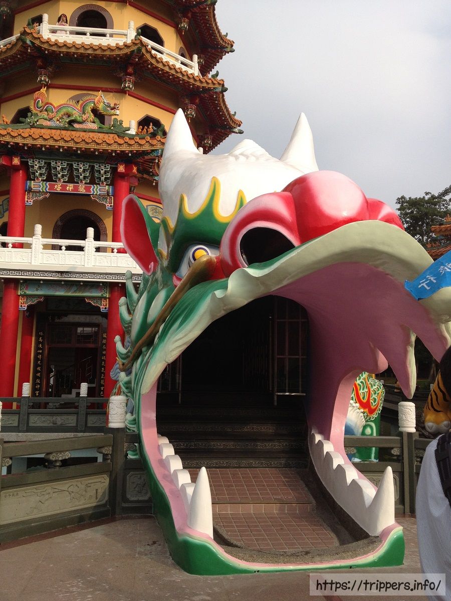 龍虎塔とは、1976年に蓮池潭に完成した二つの七重の塔です。龍塔と虎塔はそれぞれ7階建てです。龍塔の巨大な龍の口から入り、虎塔の虎の口から出るとこれまでの悪行が清められます。塔内には、親孝行の模範であった24人を取り上げた「二十四孝子」や、悪人が地獄の裁判所で受ける「十殿閻羅図」などの絵が飾られています。台湾では十二支で龍は最も良い動物、虎は最も悪い動物と信じられている歴史があり、どんな災いからでも生き延びられます。辰年(龍年)は縁起が良い年でベビーブームになります。