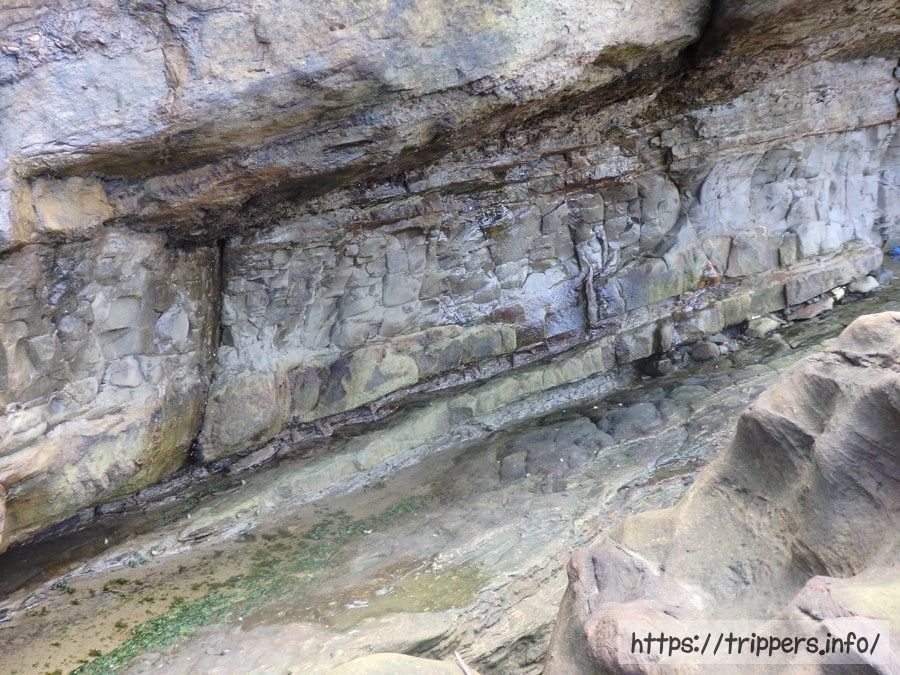 数台の駐車スペースにある石段を下りて波際まで行く事ができます。奇岩を直に触る事ができ、その触感や大きさを実感すること間違いなし。