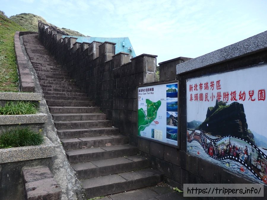 「八斗子火車站」のバス停で791のバスに乗って「鼻頭角」のバス停で下車すると到着。②「瑞芳區公所」のバス停で886のバスに乗って「鼻頭角」のバス停で下車すると到着。③「瑞芳火車站(区民広場)」のバス停で856のバスに乗って「鼻頭角」のバス停で下車。