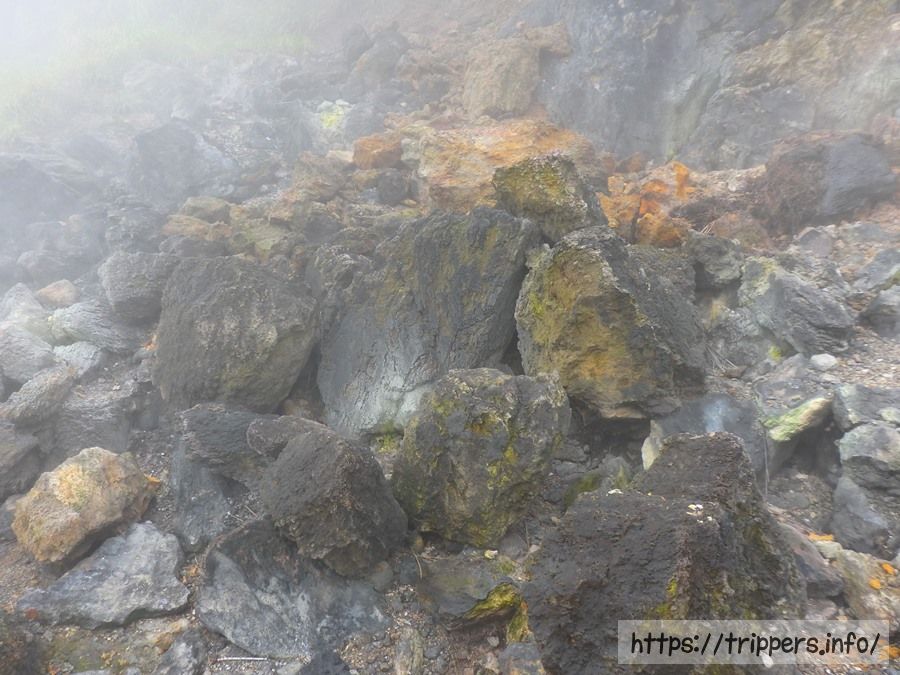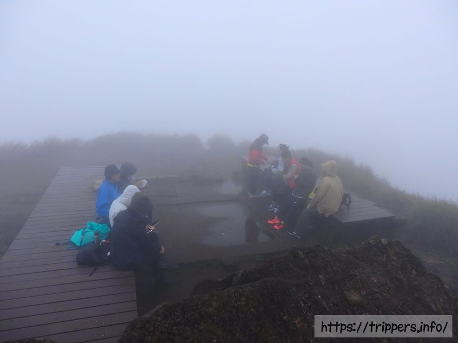 この時は小油坑より温度が2℃下がり、気温15℃でした。ガスで視界がゼロでしたが、晴れてれば素晴らしい景色があります。