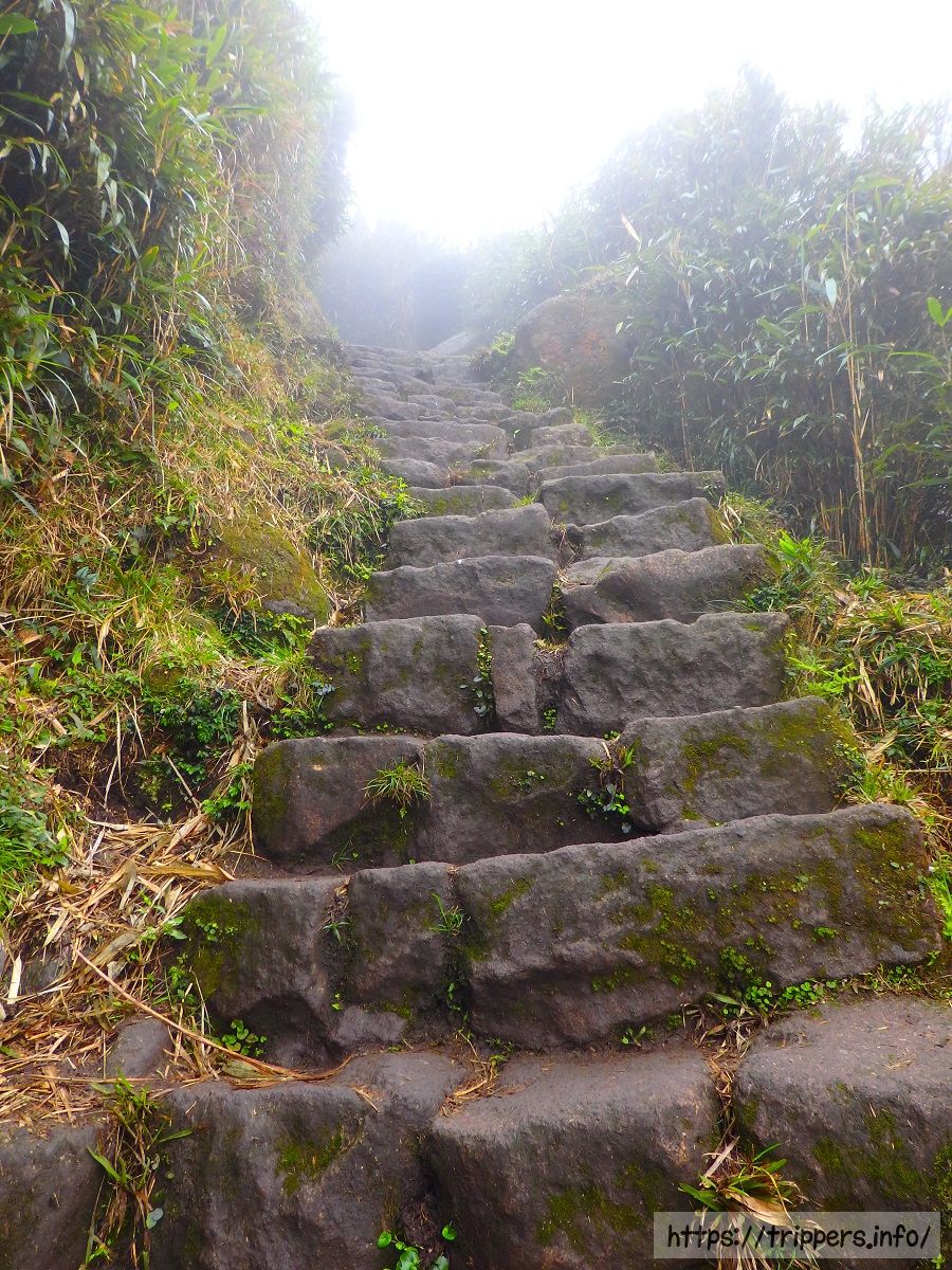 冷水坑や夢幻湖の方から七星山に登ると果てしなく続く均等な傾斜の石畳で太ももが痛くなる可能性が高いです。登山する場合は不均一な傾斜が続く小油坑登山口からが楽です。