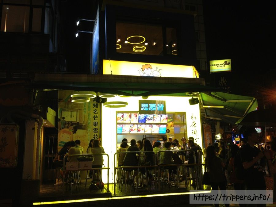思慕昔(本館)とは、永康街にある行列が出来るスムージーの店です。台湾発のかき氷「雪花冰」の中でもマンゴーかき氷が人気で、氷の食感も日本と異なります。お店の名前にもなっているスムージー(思慕昔)は材料そのものを凍らせて作られていて、産地から直送されるナチュラルで新鮮なフルーツが使われています。スムージーや雪花冰(台湾かき氷)以外にも、温かいスープスイーツも販売されています。