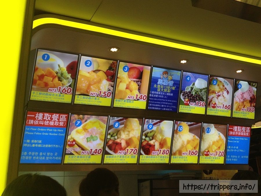 トップ画像のかき氷。とても人気。・スーパーソルベとマンゴー雪花氷は160元。