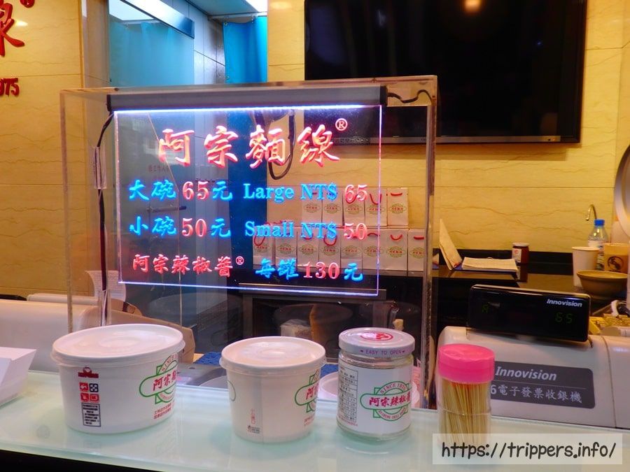 阿宗麵線とは、台湾のB級グルメである麺線のお店です。麺線は鰹ダシの効いた、とろみとコクのあるスープでそう麺を煮込んだものです。阿宗麺線では漢方調味料で煮込んだ豚の大腸が入っています。注文する際、パクチー(香菜)を入れるか日本語で聞かれます。調味料置き場にはチリソース(阿宗辣椒醬)、ガーリック、お酢の3種類のタレが置いてあり、自由にトッピング出来ます。1975年に開業した立ち食いのお店で、お店の前が麺線を食べる客だらけになる程人気です。忠孝復興駅にある支店では椅子とテーブルがあり、座って食べる事が出来ます。
