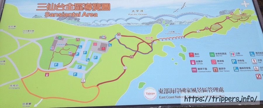 「三仙台遊憩區」バス停でおります。1日5本のみ運行、片道189元(支払いは現金、悠遊卡、一卡通のどれでも)行き:台東火車站→三仙台遊憩區 (乗車している時間:1:24)