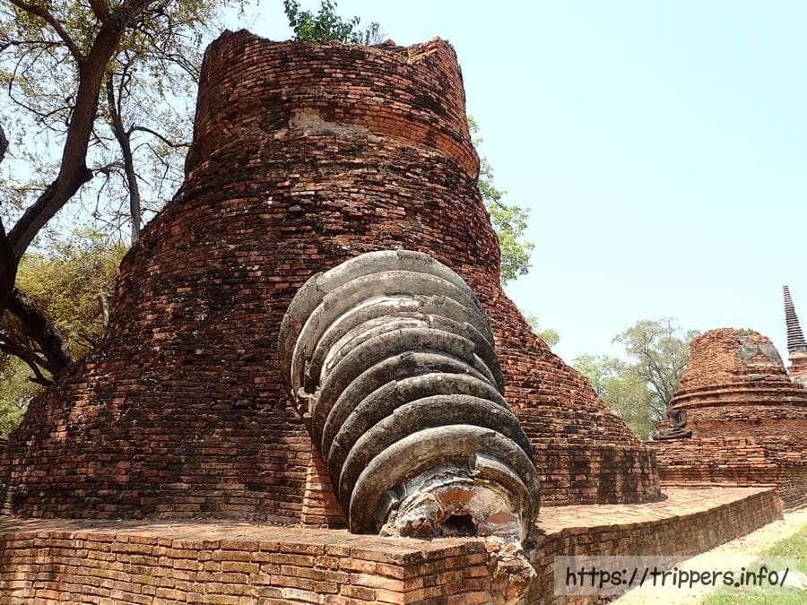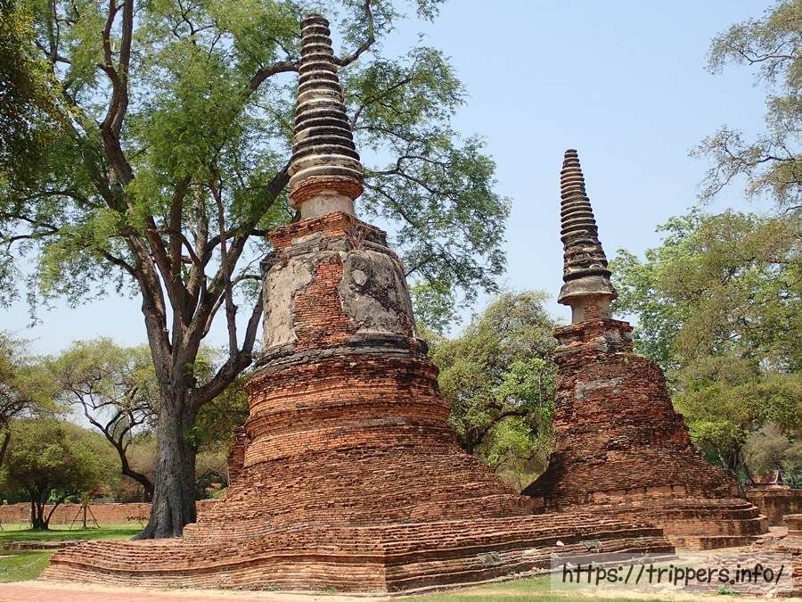 建立される前は、アユタヤ王朝の初代の王であるラーマーティボーディー1世によって宮殿が建てられており、仏塔が建てられる前から仏教儀式の場として使われていました。仏塔は最初2つ建てられましたが、トライローカナート王の息子であるラーマーティボーディー2世が亡くなると、3つ目の仏塔が建てられ遺骨が納められました。