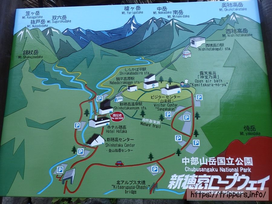 ここから穂高ロープウェイが見えます。見上げる角度ではなく、若干見下ろす感じが標高の高さを実感させてくれます。