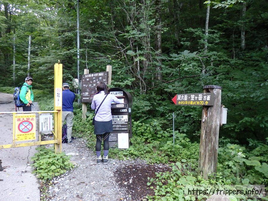 登山届をここで記入して提出します。事前に作成してきたので、提出してすぐに出発です。