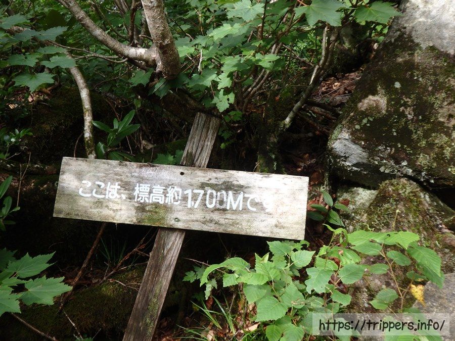 07:15に標高差1,700mに到着。45分で標高330m登ったみたいです。持参したおにぎり3つを3回の朝食休憩に分けて食べます。3回目の朝食休憩は09:00頃でした。
