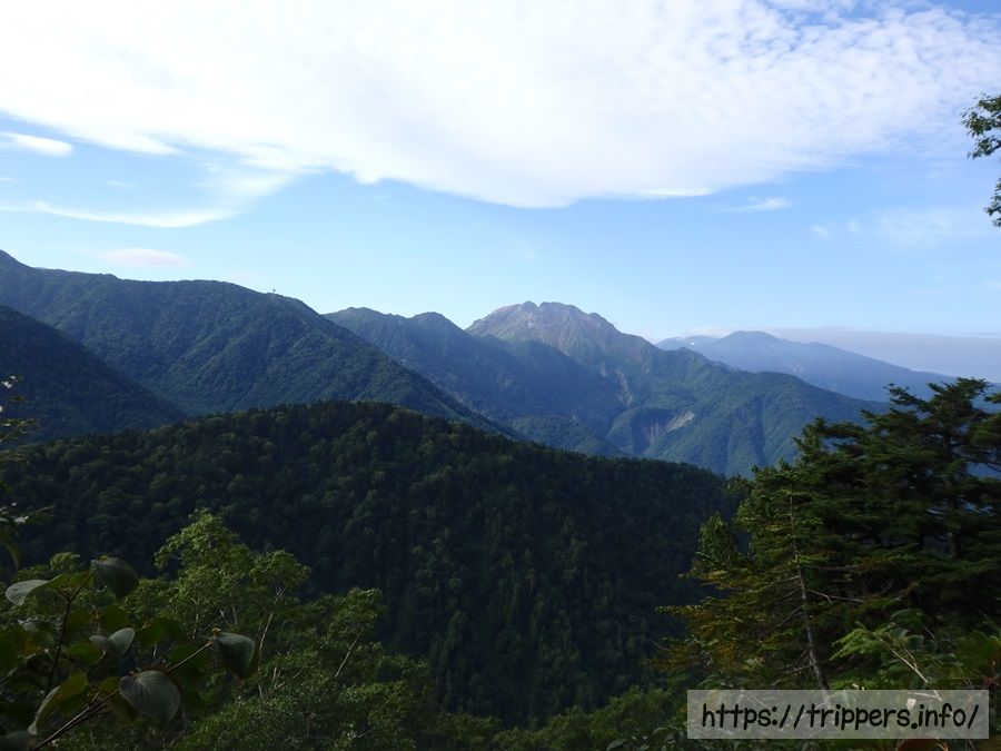 視界が開けた場所が所々出てきました。焼岳が見えます。またヘリコプターの音が2回に分けて聞こえました。