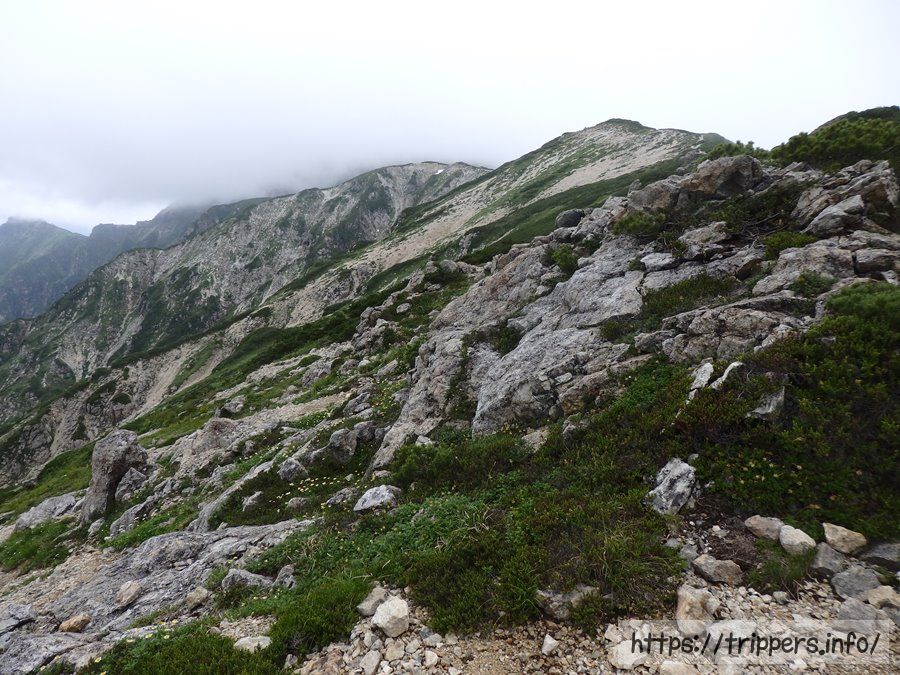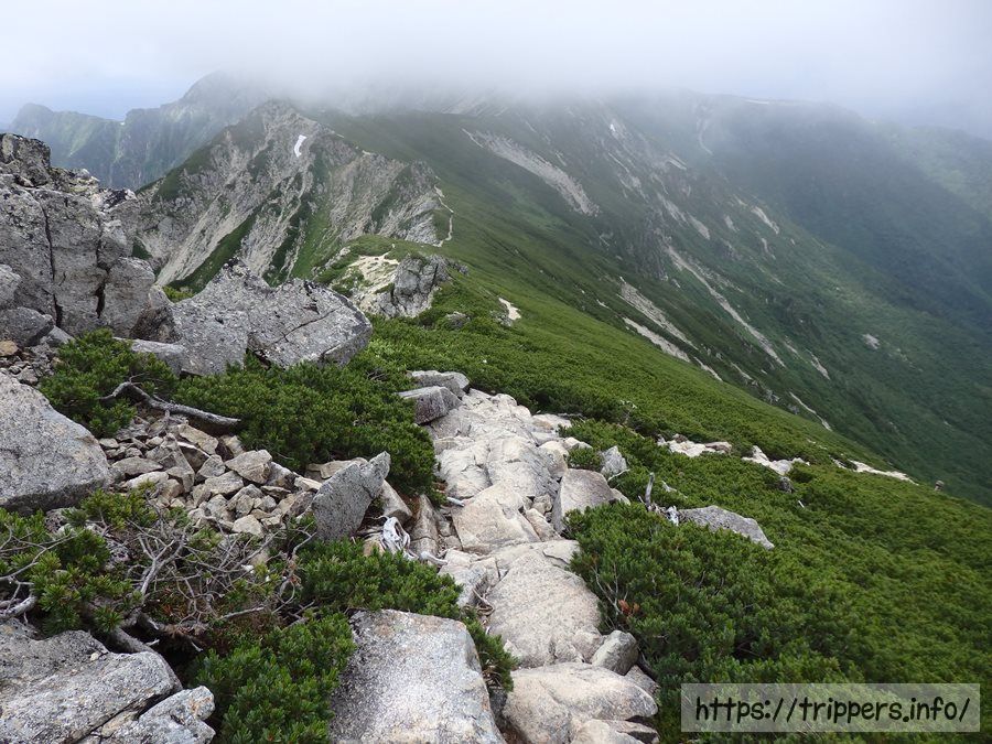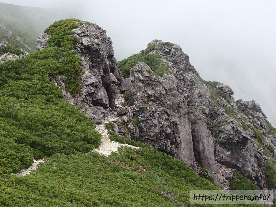 抜戸岩という名前が付いた岩が尾根にありました。ここにも雷鳥の目撃情報が!