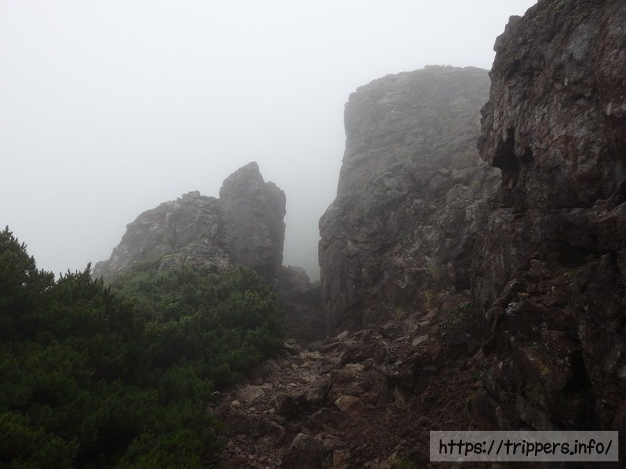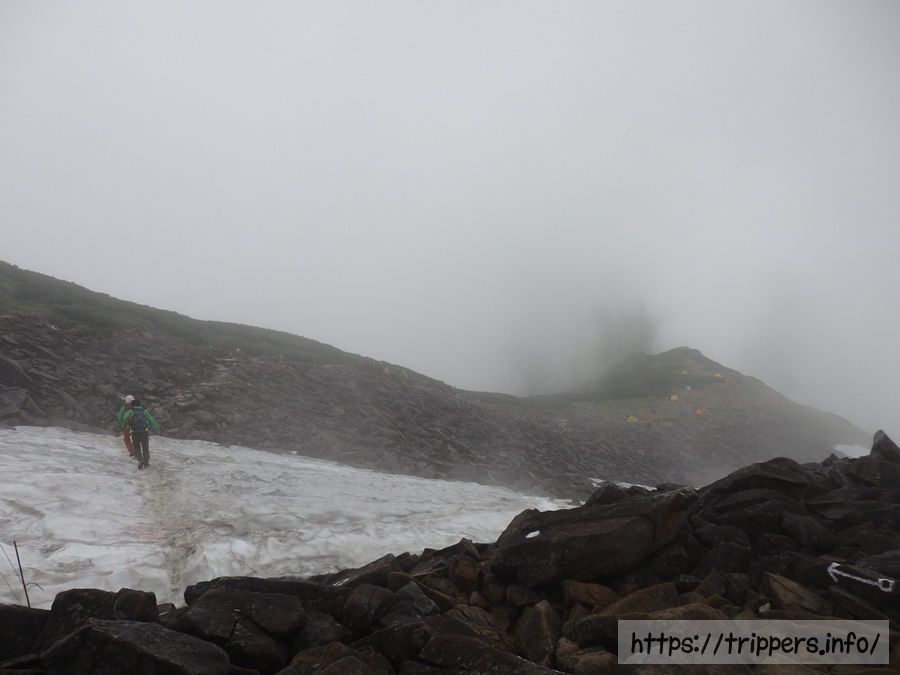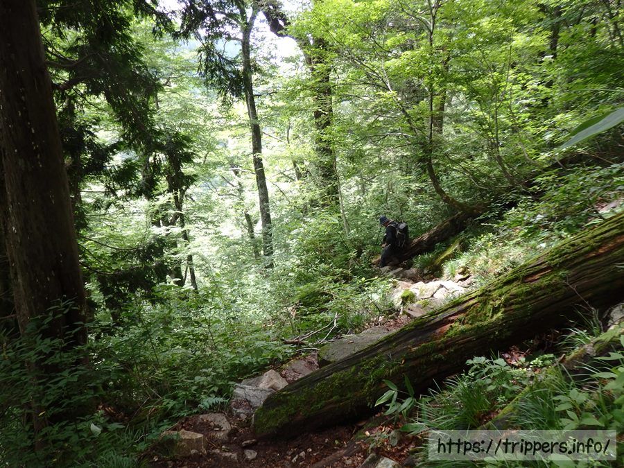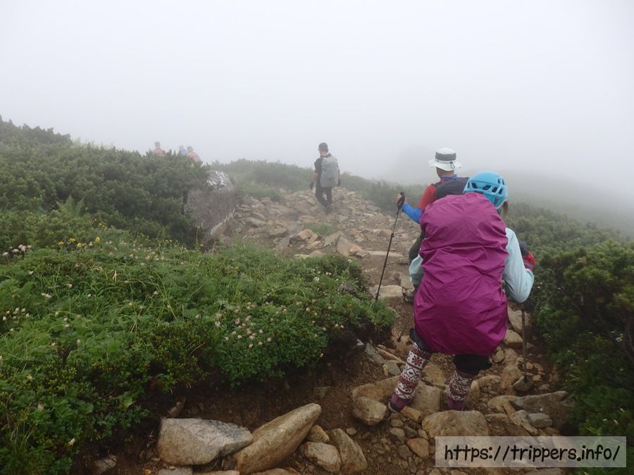 ここからは行きは使用しなかったトレッキングポールの出番です。出かける前にちゃんとネット動画で使い方を予習してきました。前を歩く方とも山荘で良くして頂きました。感謝です。