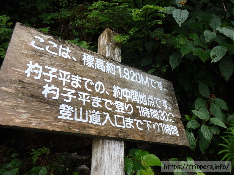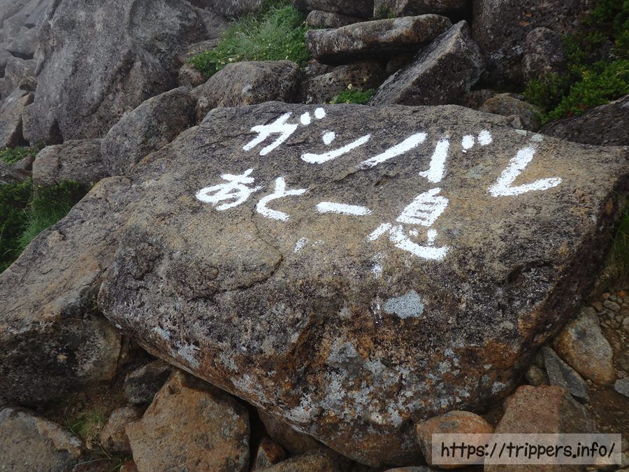山荘までガンバレあと一息っていうのがありましたね。行きは写真撮らなかったけれど。実際は二息、三息でした。
