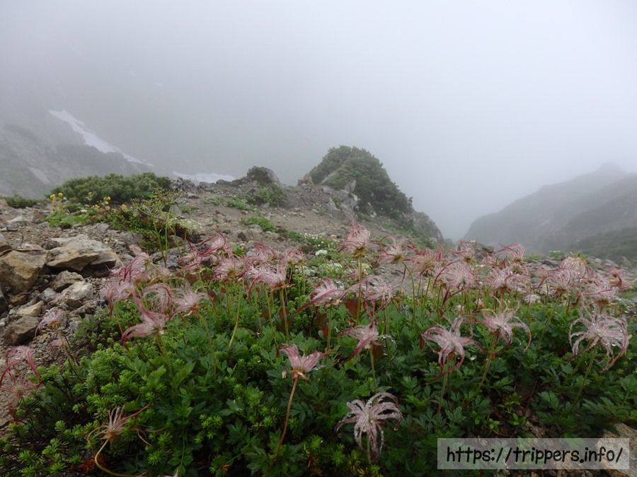 露に濡れたチングルマが可愛いったらなんのなんのと、ずっと見慣れていない高山植物に飽きが来ません。