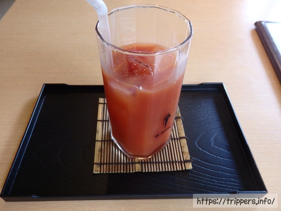 トマトジュースは400円。普段飲まないけれど、この時ばかりはトマトのさっぱり感がたまりませんでした。