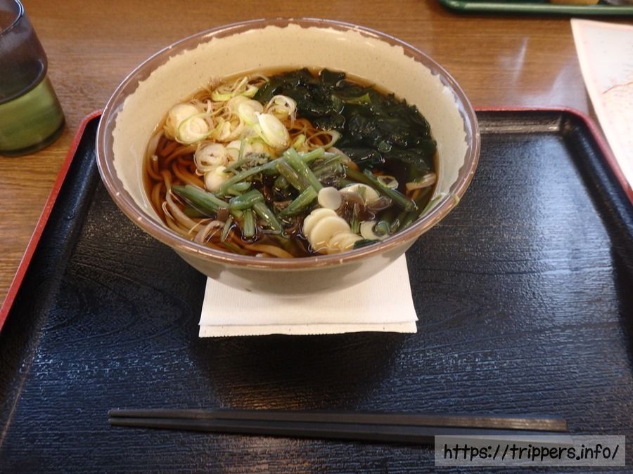 中央道パーキングエリアでそばの夕食で旅は帰路へ。