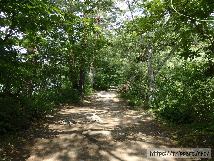 ここまで歩いてきて、夏なのに虫がとても少ないように感じました。草木で直射日光に照らされる事は多くないですが、風が遮られるため、水分補給は必要です。