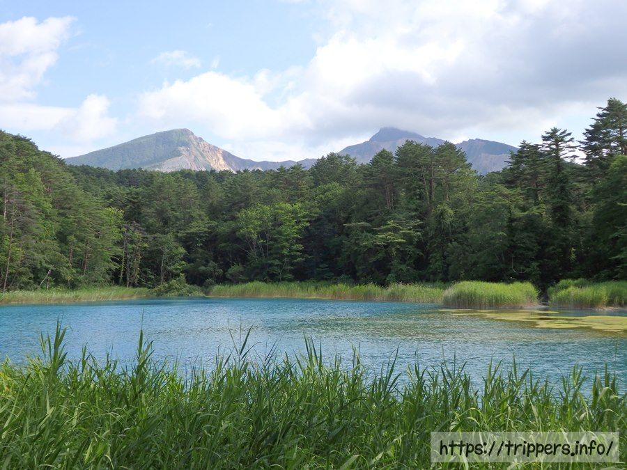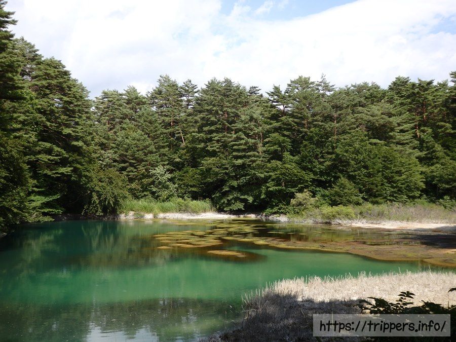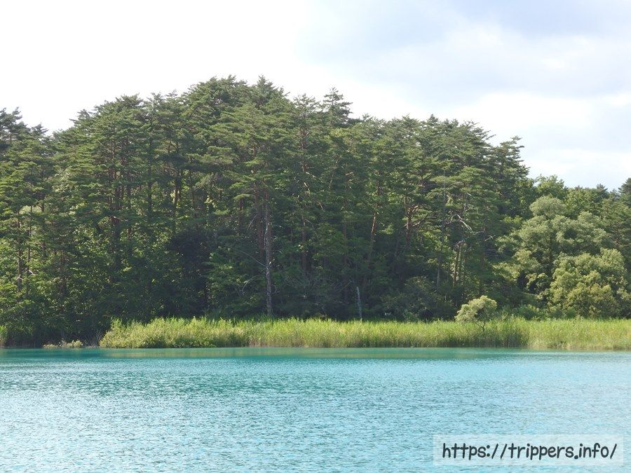 例年よりも水が少ないようですが、とても綺麗なエメラルドグリーンの色をした沼です。五色沼の中で一番発色が良かったと思います。