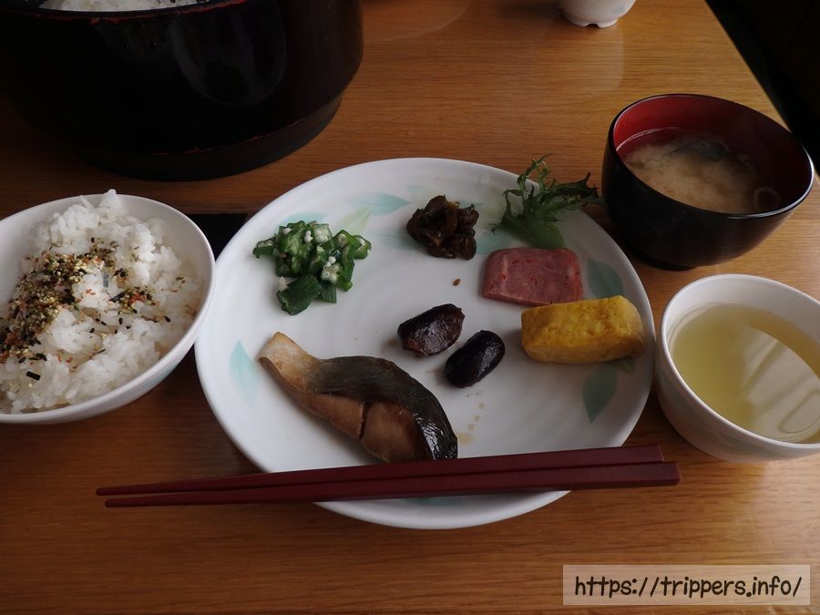 朝食は質素な感じですが、ご飯とふりかけおかわり自由なのでお腹は満たせます。