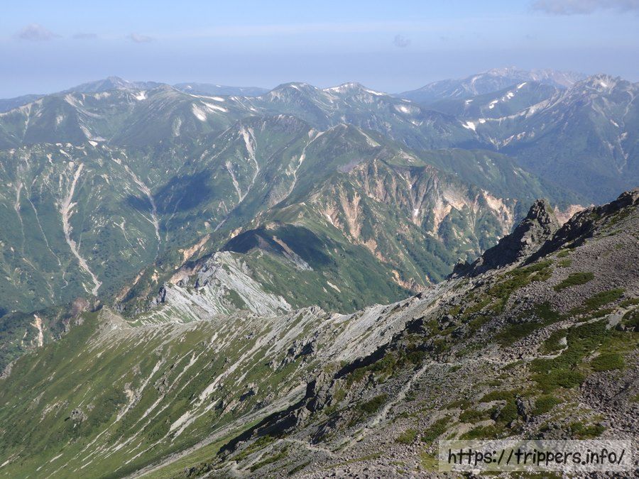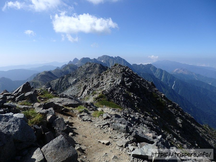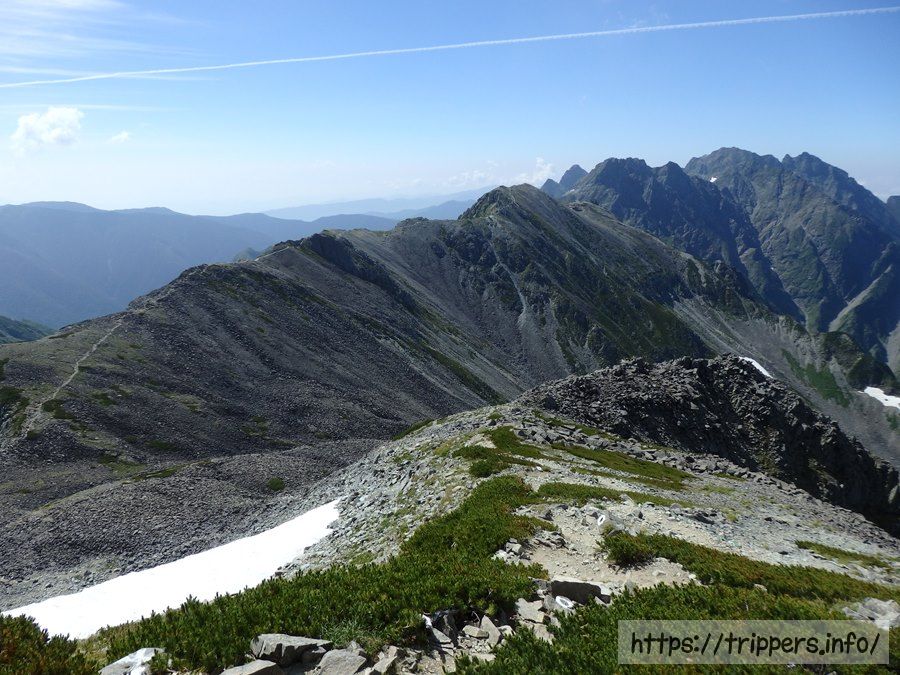 稜線歩きは、頑張って山を登ったご褒美のように感じます。景色を遮る木々もなくどこを観ても飽きる事のない雄大な山々を観賞しながら空中散歩する非現実的行為に心躍りながら、足も軽くなります。