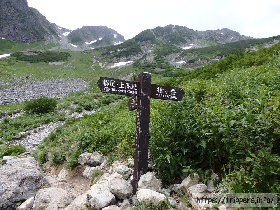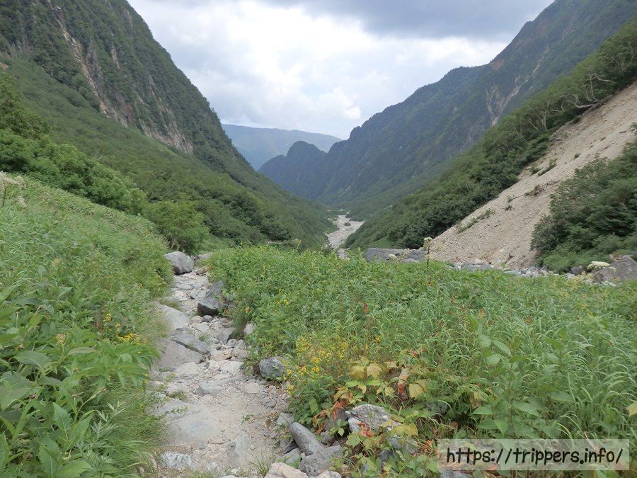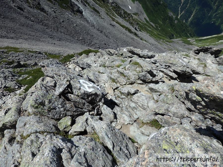 ガレ場を下って行けば昨日通った水俣乗越分岐に到着です。
