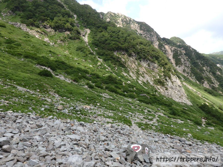 ザレ場とガレ場、岩場の違いって今までちゃんと理解してなかったのですが、調べてみると、ザレは小石だらけの場所で、ガレはげんこつから頭くらいの石だらけの場所ってありました。なるほど、ここはガレ場と区別して大丈夫そうですね。