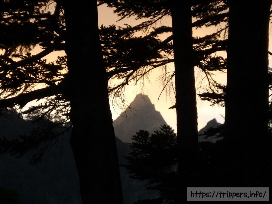 夕食後は歯磨きしながら望遠鏡で槍ヶ岳観察。ここが本当の見納め場所になりました。
