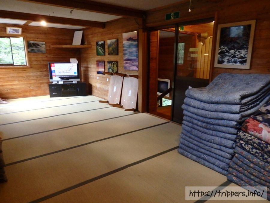 今日泊まる部屋はこんな感じです。嬉しい事に端っこを手に入れました。更に、お隣の布団は誰もいませんでした。ラッキーですね。遅く来た団体らしき人達は廊下に布団を敷いた場所が団体ごとにあてがわれていました。個人であるがゆえのメリットはこんなところにもあるのかもしれないです。