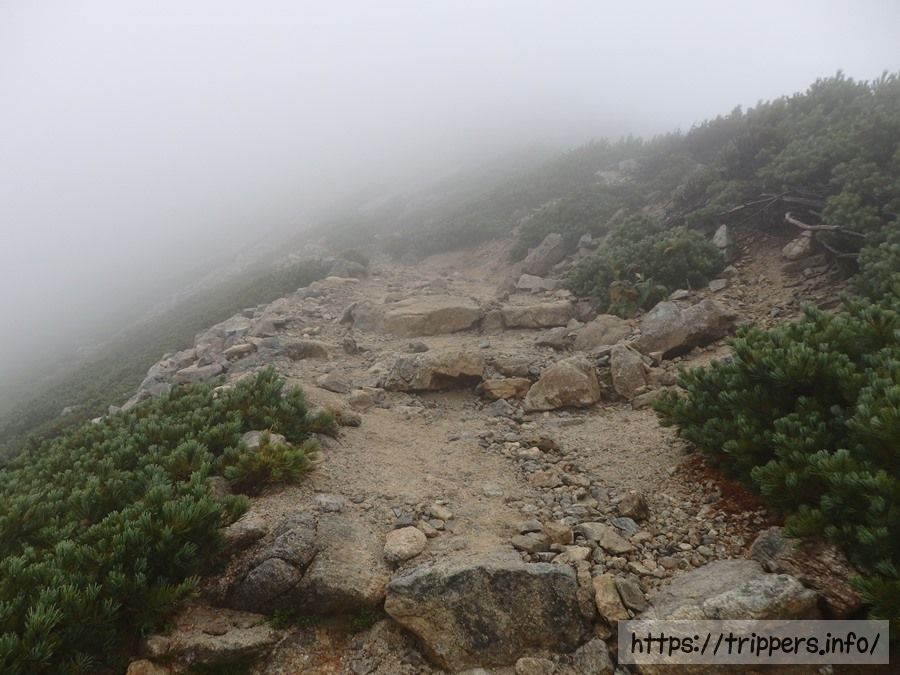 五竜山荘が見えてきました。山頂はガスっているため、山頂からの景色が見れるかどうかは運任せになりそうです。