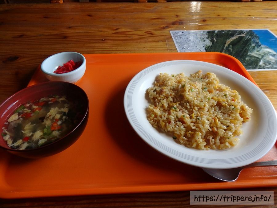 昼食は食堂で700円のチャーハンを注文しました。量は少なめですが、とっても美味しいです。唐松岳頂上山荘の食事とは味が異なっておりました。