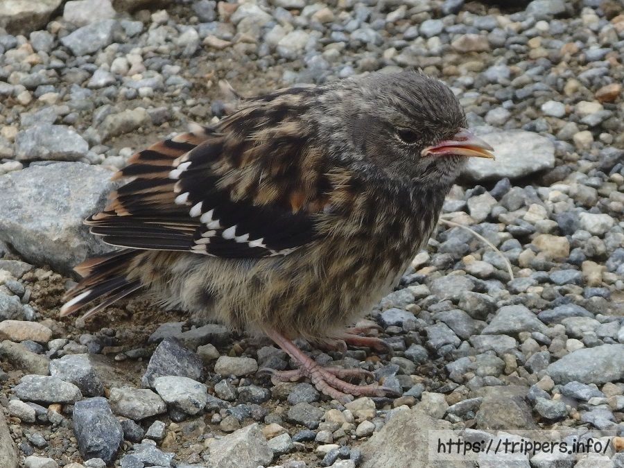 五竜山荘の前でイワヒバリを見つけました。冬支度なのか、既に結構太ってます。近くに行っても逃げずに、逆に向こうから近づいて来ました。