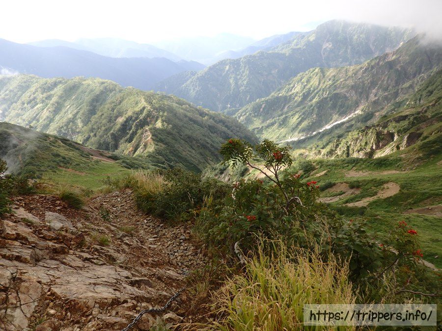 遠見尾根は岩場になっており鎖場が幾つもありました。小雨が降ったり降らなかったりで岩が濡れており、結構滑りました。慎重に移動したため、標準タイムの2倍は要しました。