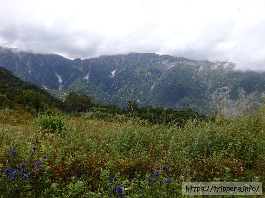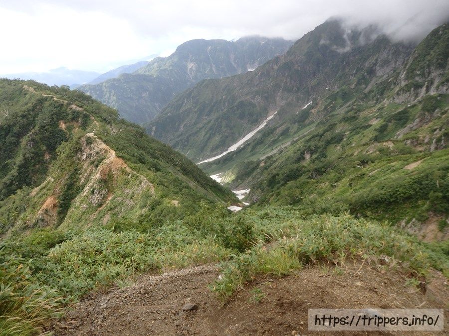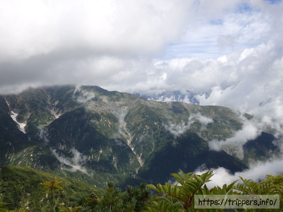 一昨日歩いた八方尾根が見えました。唐松岳の山頂は雲の中でしたが、どんな場所を歩いていたのか一昨日はガスで把握出来ずに登っていたので、最後に知れて良かったです。