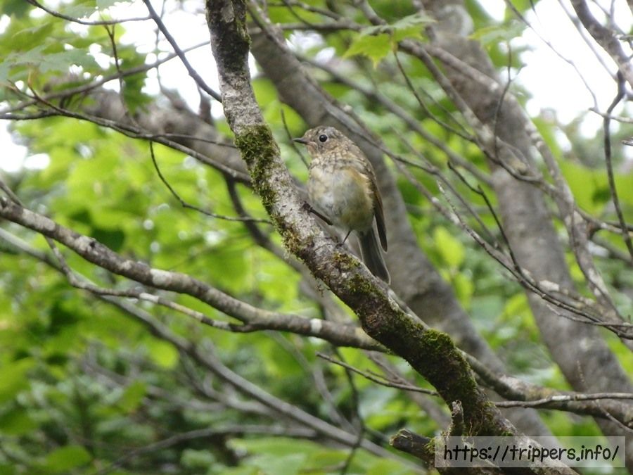 鳥の鳴き声が聞こえたので周囲を見回すと、ルリビタキの幼鳥がいました。
