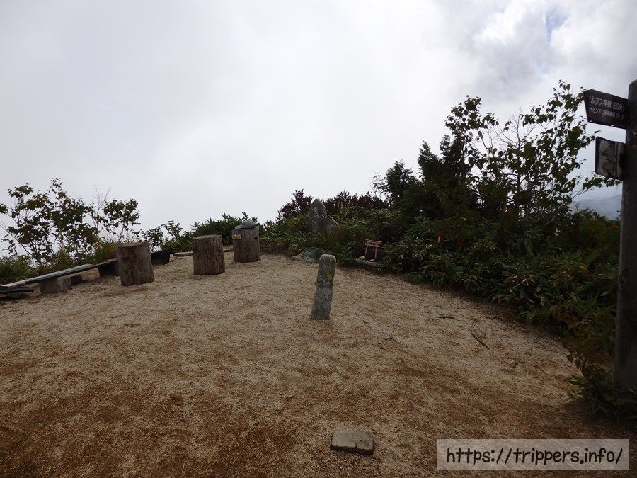 中遠見山。ガスがなければ素晴らしいパノラマの世界が広がっていたと思います。