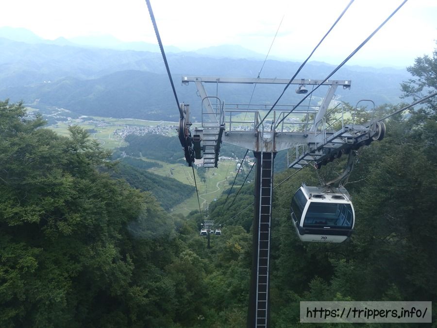 白馬五竜テレキャビンに乗ってアルプス平駅から遠見駅へ下りて行きます。