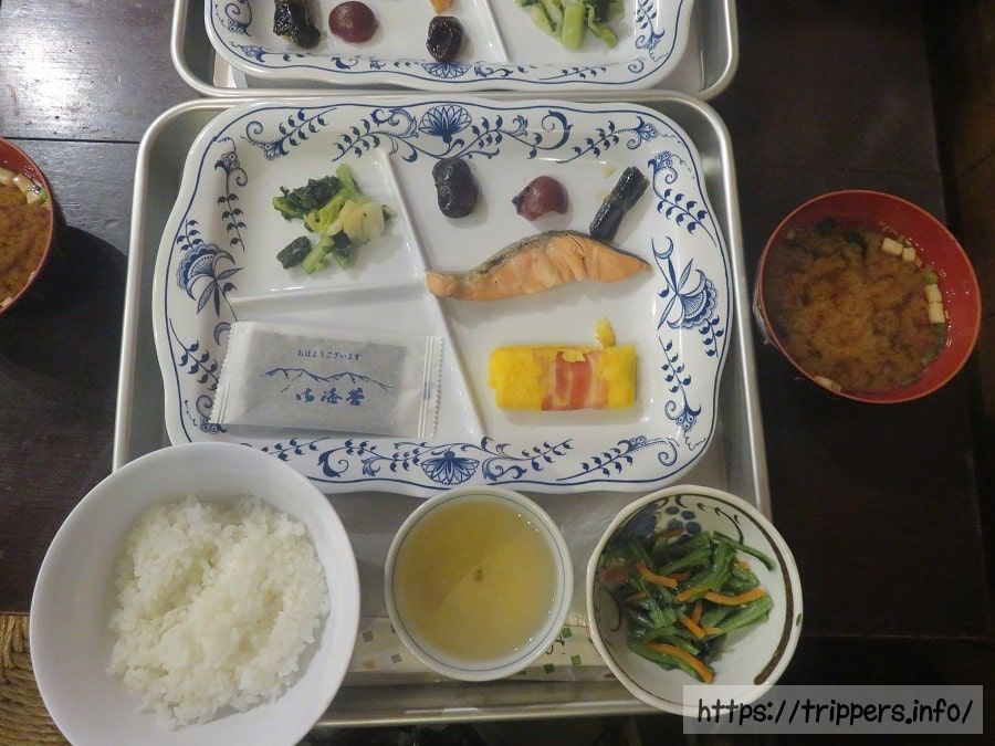 朝食のお味は山小屋の中では良い方だと思いますが、ご飯と味噌汁以外が冷たいのは昨日と同じです。