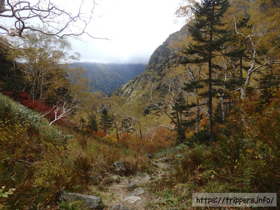 今日の夜から台風が北側を通過するようですが、今はまだ天気が良いです。上高地へは初心者は通らないパノラマコースで帰る事にしました。今日は土曜日で3連休初日なので、行きに通った横尾経由の初心者ルートは涸沢カールへ向かう登山者で途切れる事のない芋洗いの列ができている事でしょう。