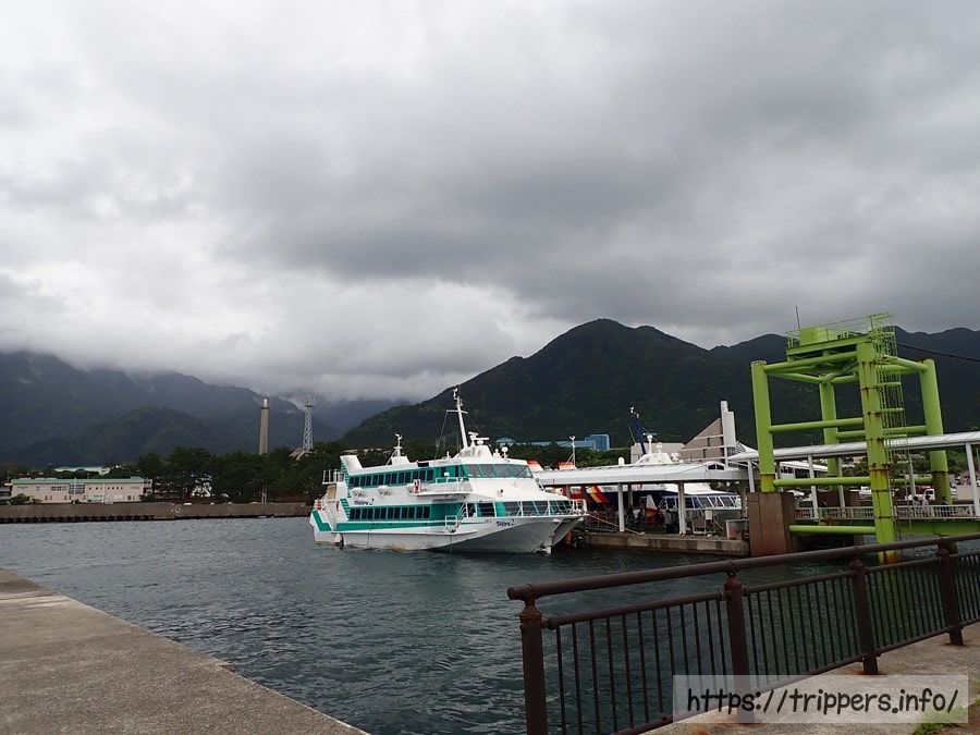 バスは安房港に到着し下車します。宿までトランクケースを引きずります。鹿児島からここへ高速船は出ていますが、本数が少ないため宮之浦港行きの高速船を選びました。