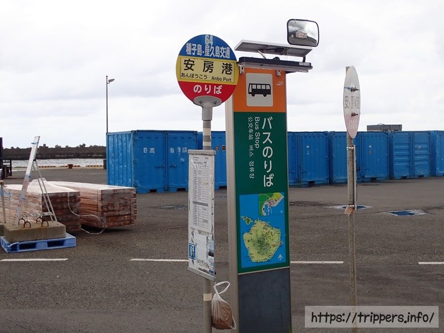 屋久島の宮之浦港へ到着しました。今日は宮之浦地区ではなく安房地区に宿泊するため港の目の前にあるバス停からバスに乗る必要があります。