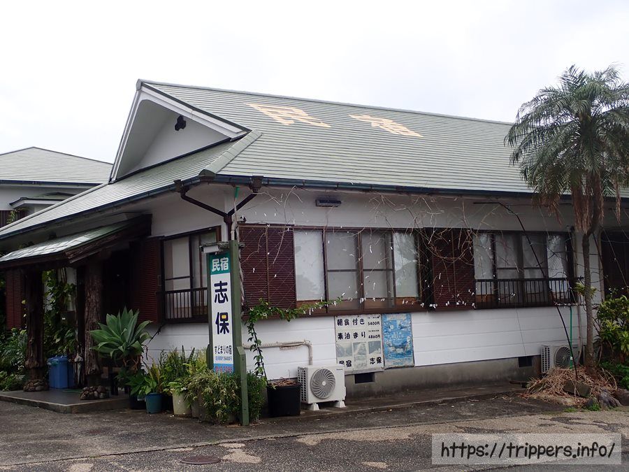 こちらが宿泊する民宿志保です。素泊まりか朝食付どちらか選べます。周囲の民宿と比較するとお値段がお高めのようです。