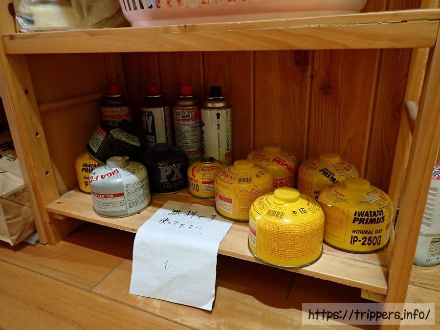 まさかですね。宿にガスボンベが置いてありました。買わなくて良かったですね。ただどの宿にも他の登山者が置いて行ったガスボンベがある訳ではないし、スーパーで買える保証もないのでリスクマネジメントは必要だと思います。