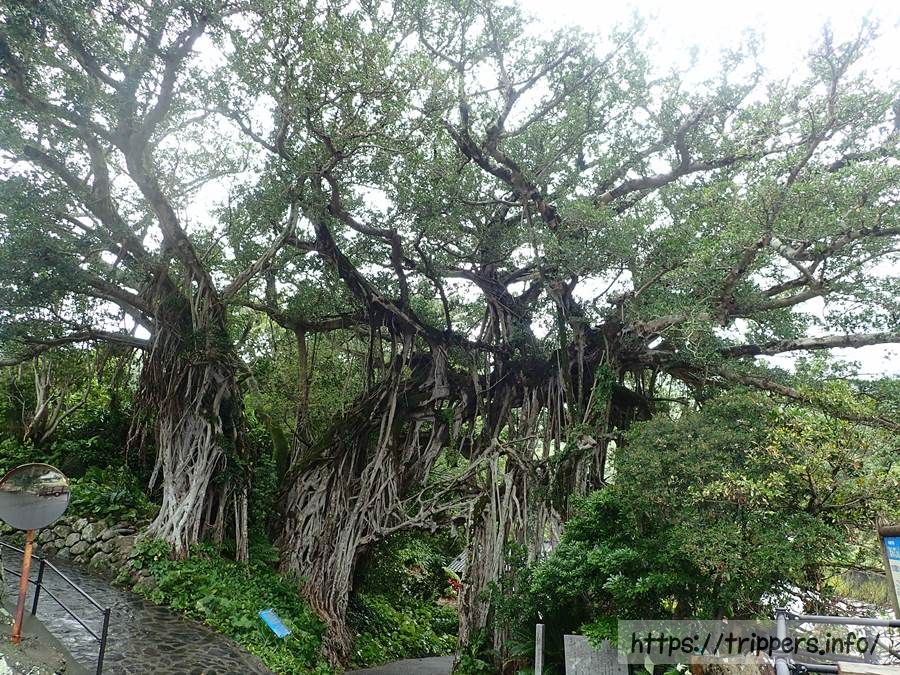 次の見学先はアーチ状に広がる中間ガジュマルで、樹齢300年を越えるようです。