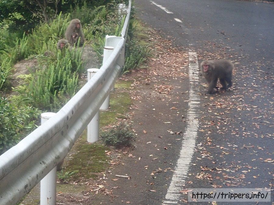 バスに戻り西部林道を通過するとヤクザルの群れに遭遇しました。2日目のタクシーの中で見た時は夜が明ける前だったので、姿が良く見えて嬉しい。